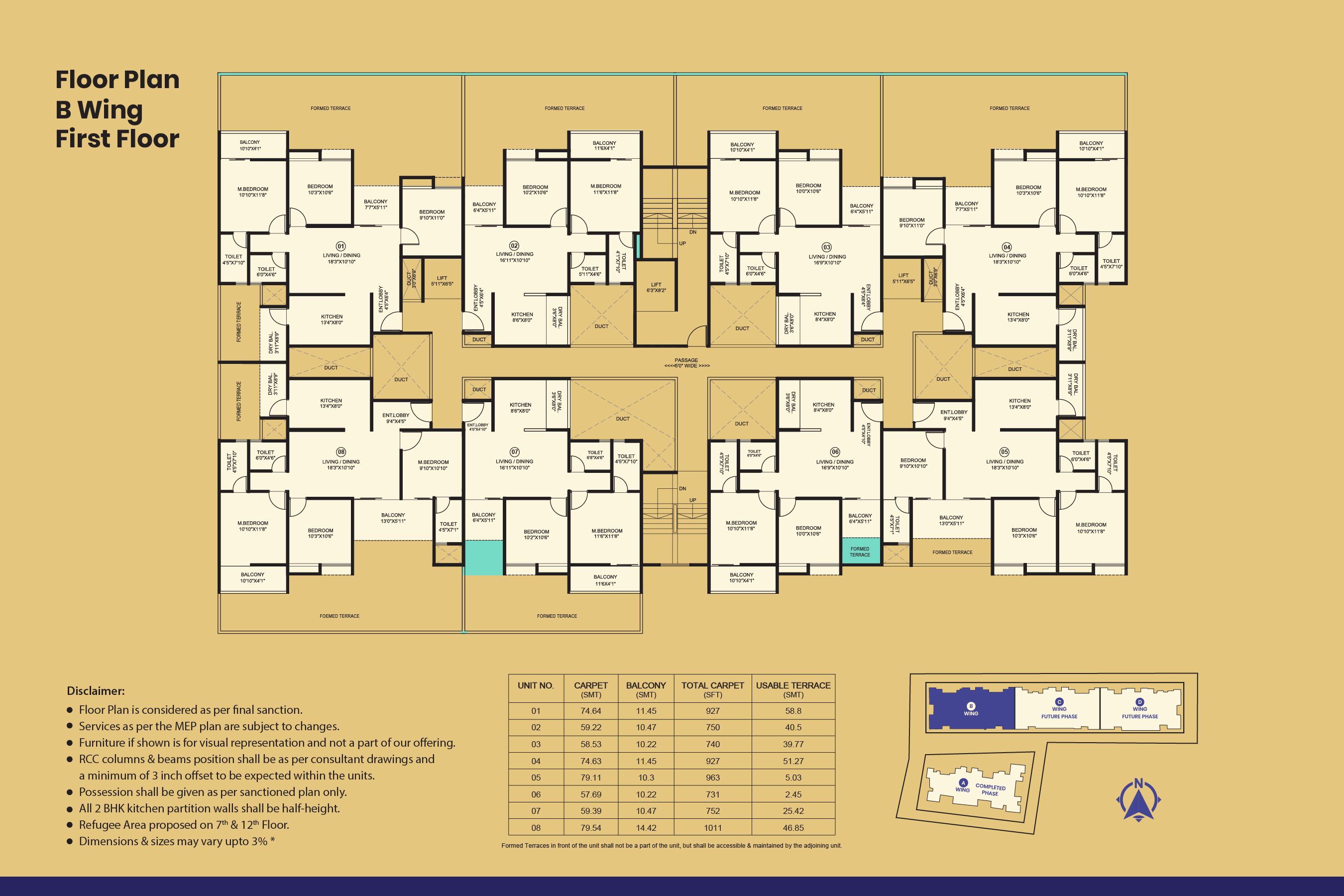 | Type 2 BHK Flats / Apartments | Carpet Area 731 Sq.ft. | Price 66 Lac | Floor Plan